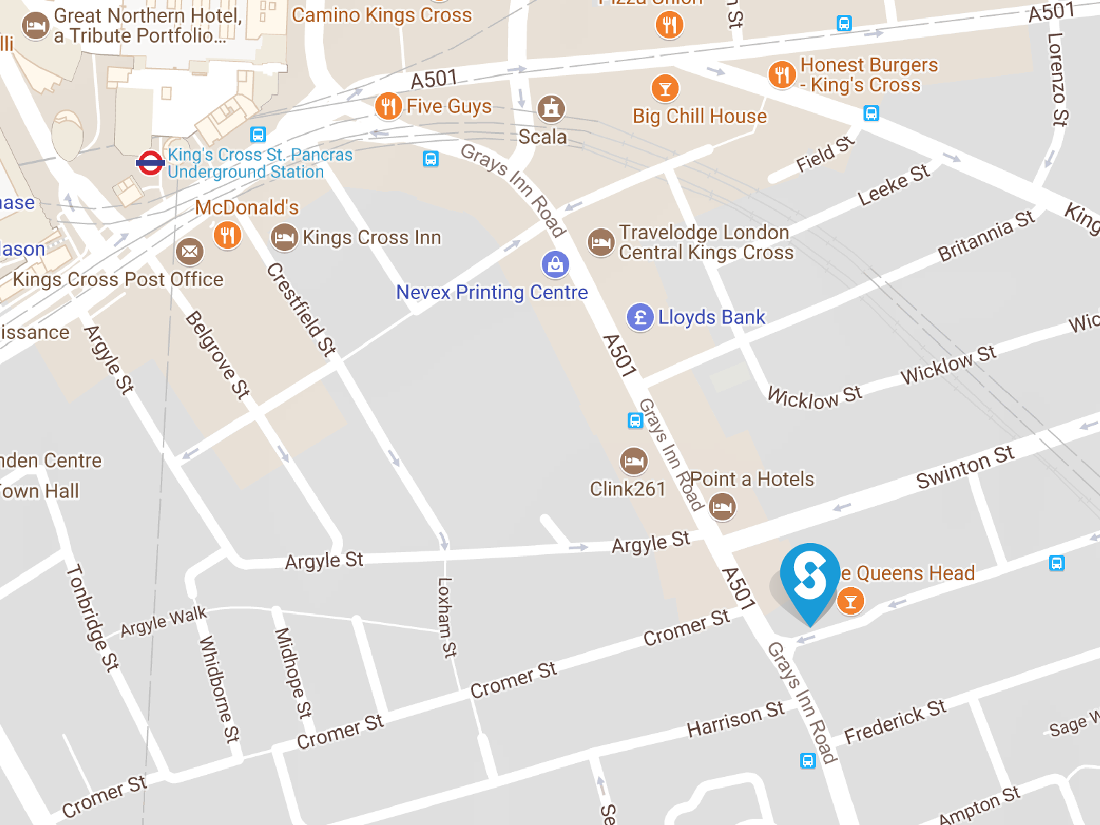 Please note: Headland House is located at the junction of Acton Street & Grays Inn Road. The entrance to the building is on Acton Street.